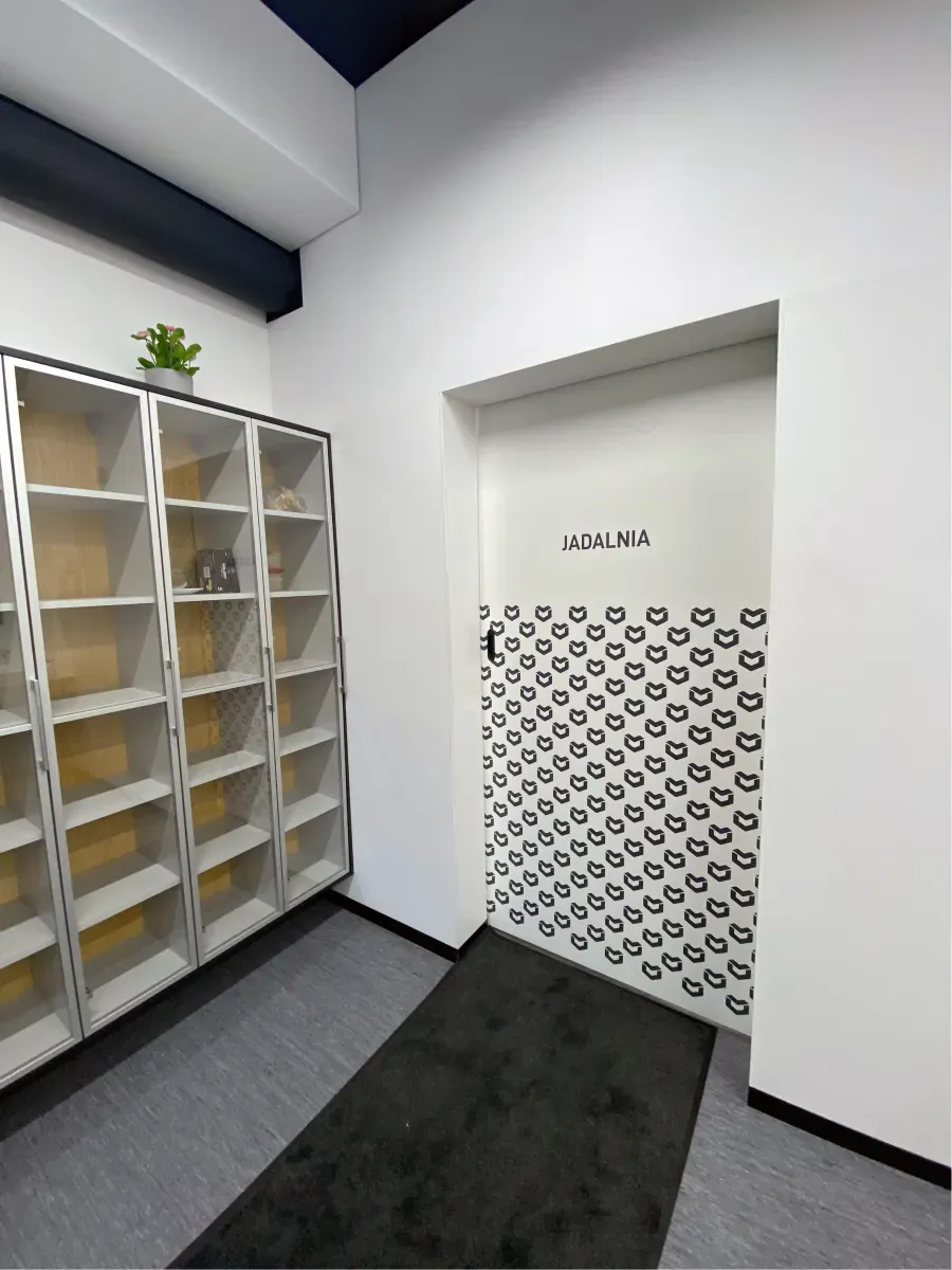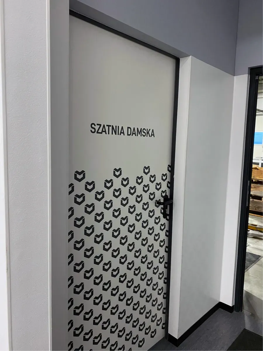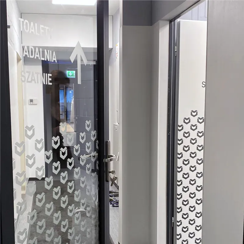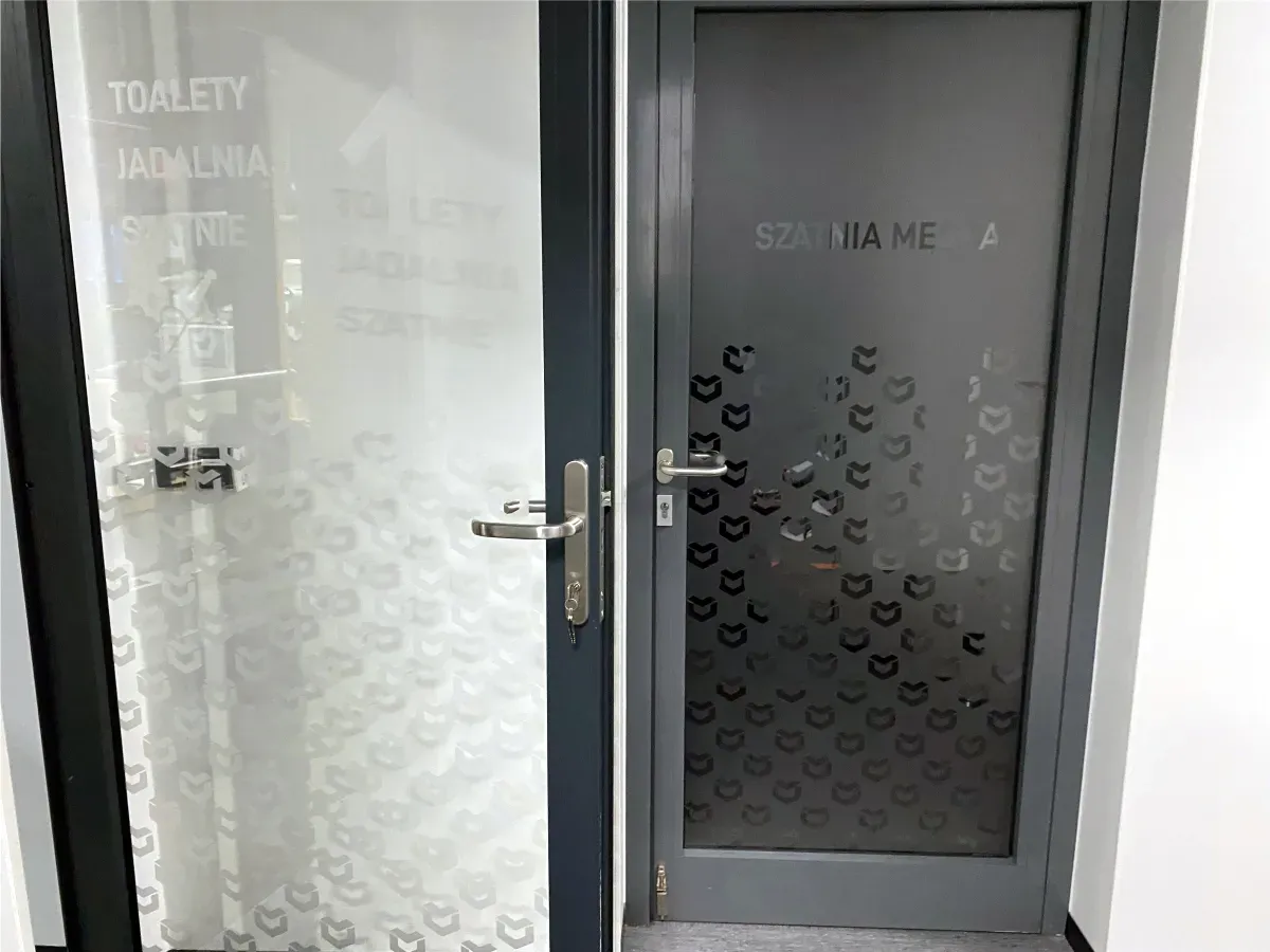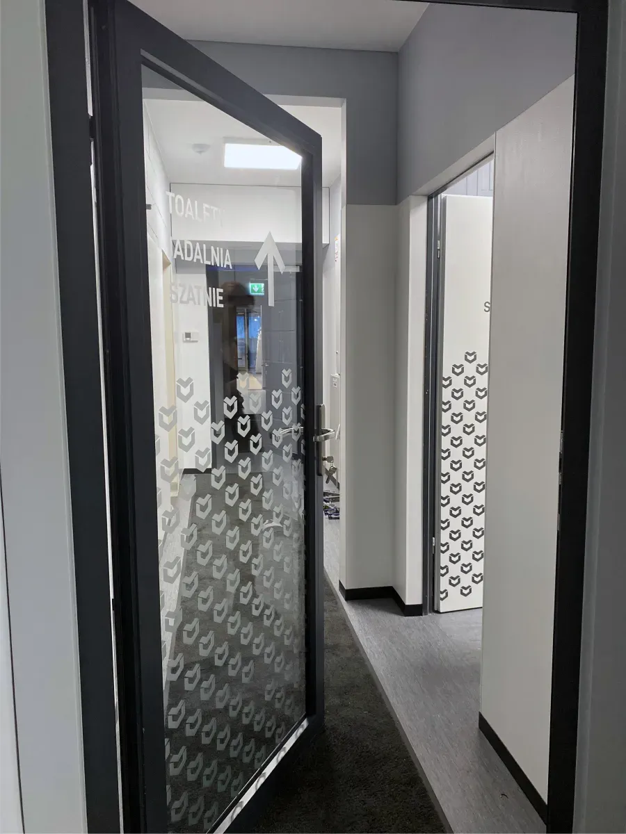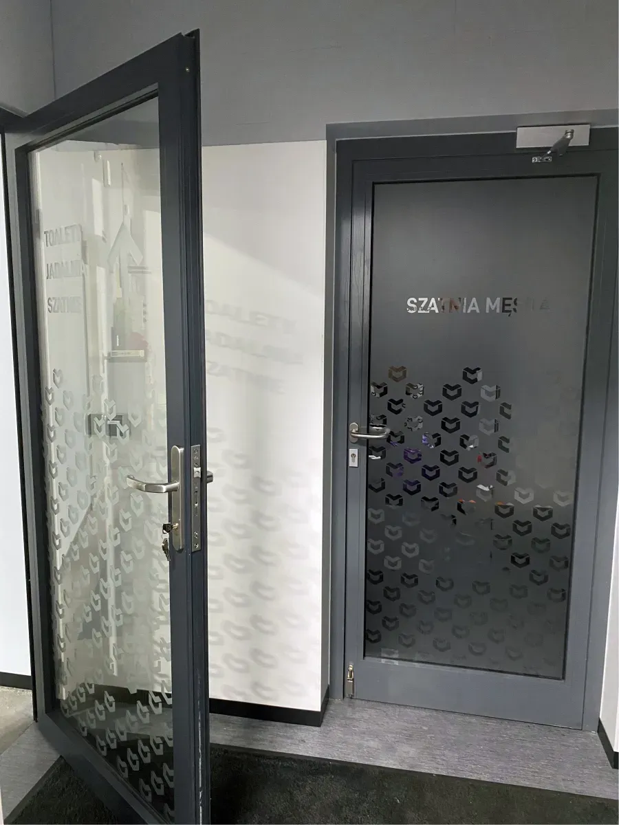Użycie folii szronionej (mrożonej) nadało wnętrzom nowoczesny, profesjonalny wygląd, jednocześnie zapewniając prywatność pomieszczeń. Akcenty z czarnej folii matowej dodały kontrastu i głębi, podkreślając charakter marki.