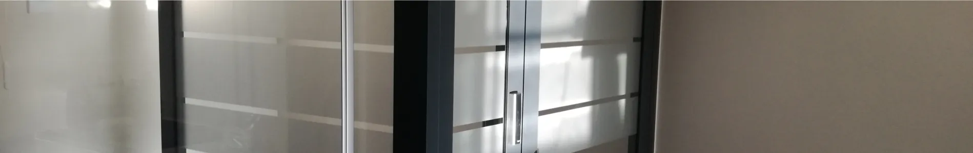 Na przeszkleniach zastosowano folię szronioną z wyciętymi pasami, ułożonymi w różnych kombinacjach pionowych i poziomych, w zależności od charakteru poszczególnych stref. Dzięki temu uzyskano subtelny, ale efektowny podział przestrzeni, dopasowany do funkcji pomieszczeń.