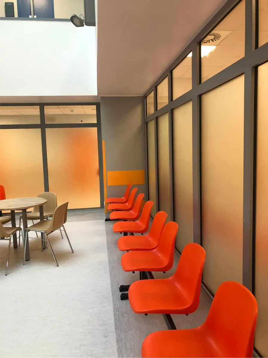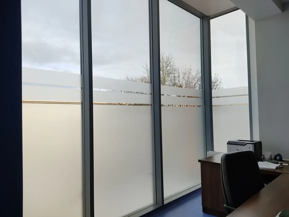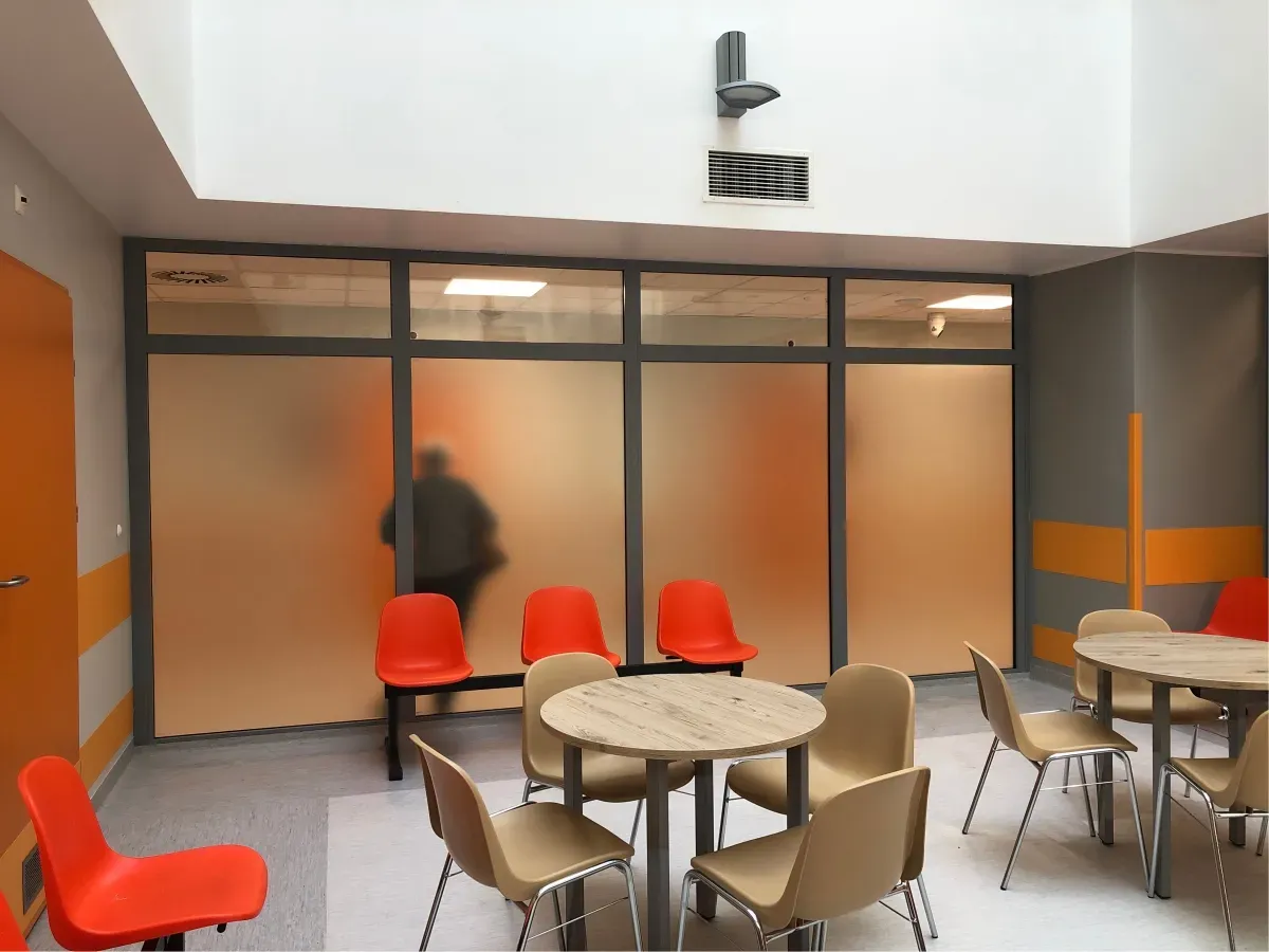 Folia matowa doskonale rozprasza światło, jednocześnie przepuszczając jego odpowiednią ilość, co pozwala zachować jasność pomieszczeń. Dodatkowym atutem jest estetyczny, nowoczesny wygląd, który współgra z architekturą wnętrz placówki.