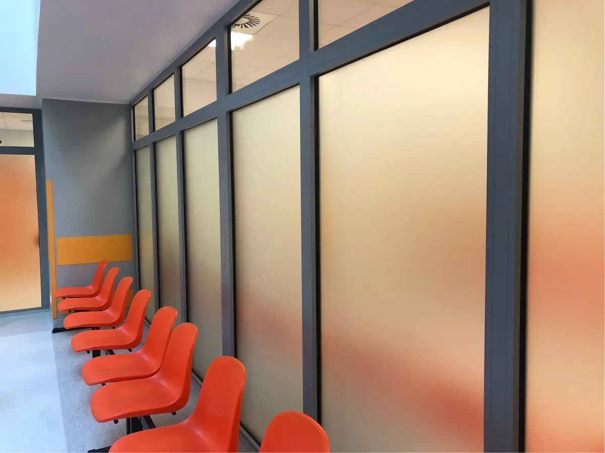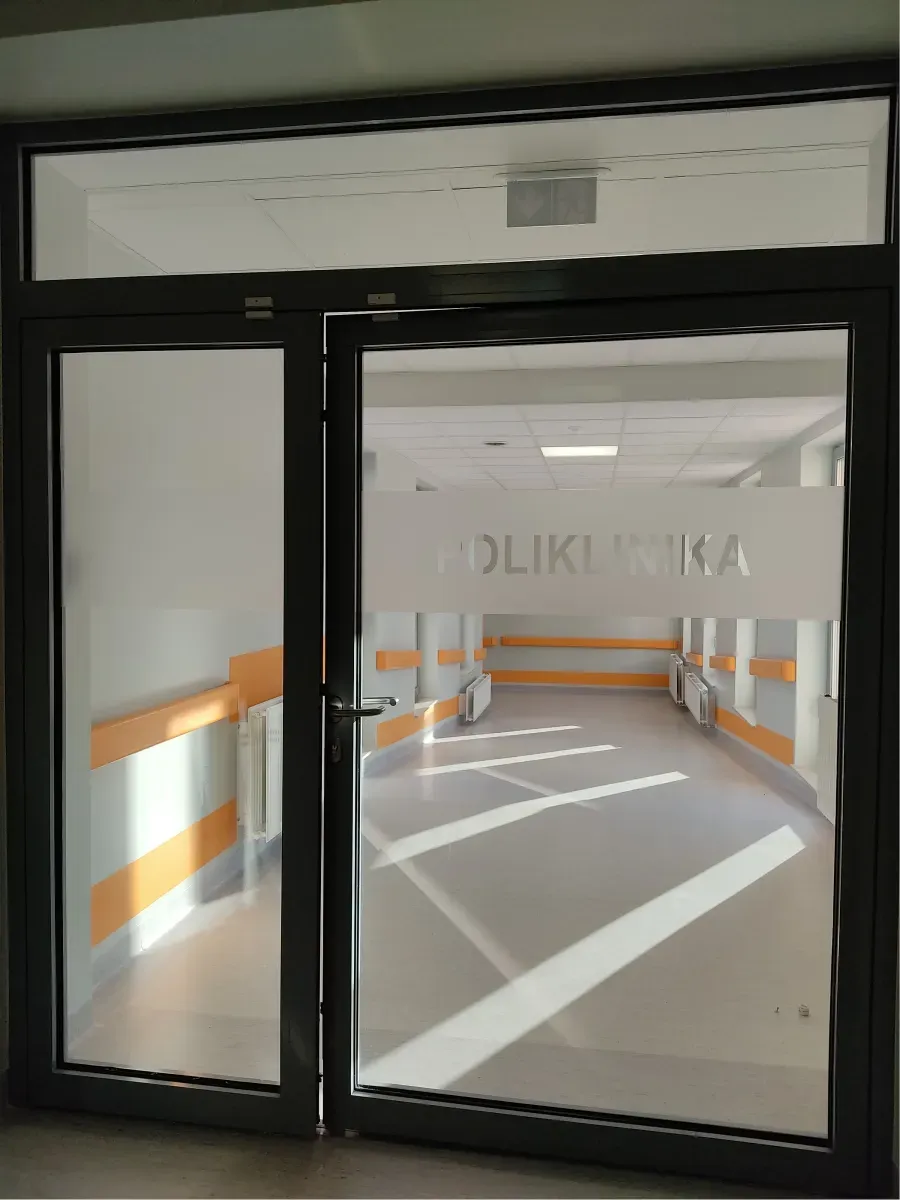 W ramach realizacji dla Polikliniki Wojskowej w Bydgoszczy wykonaliśmy oklejenie przeszkleń folią szronioną, która zapewnia pacjentom prywatność i komfort podczas przebywania w przestrzeniach medycznych.