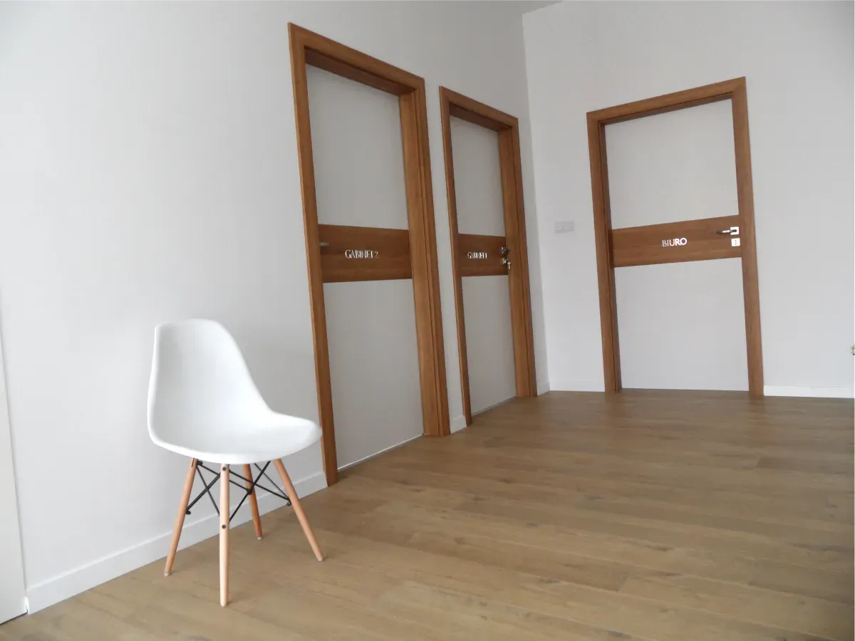 Montaż na powierzchni imitującej drewno tworzy nowoczesny, ale przytulny efekt, doskonale komponujący się z wnętrzami biurowymi.