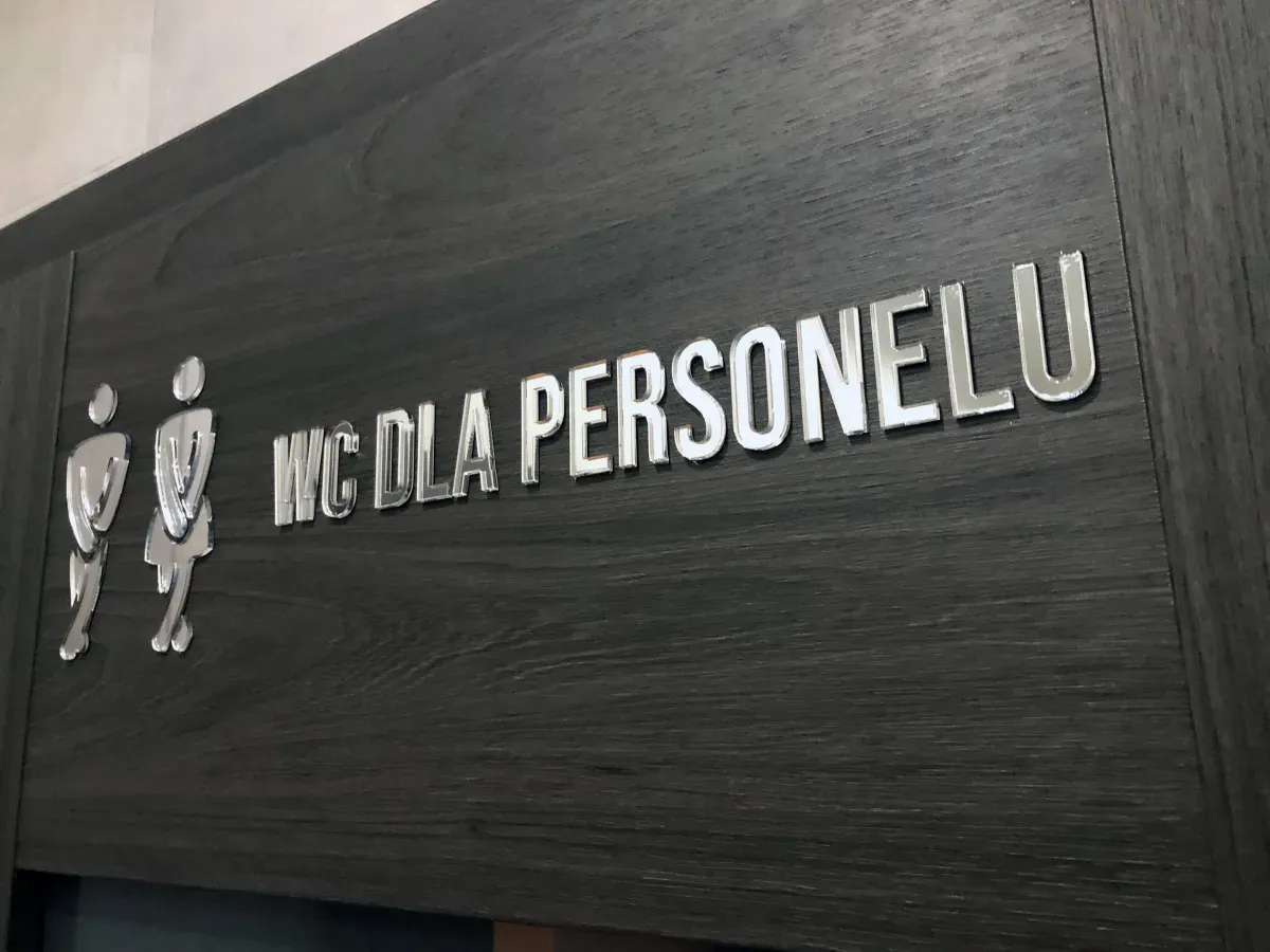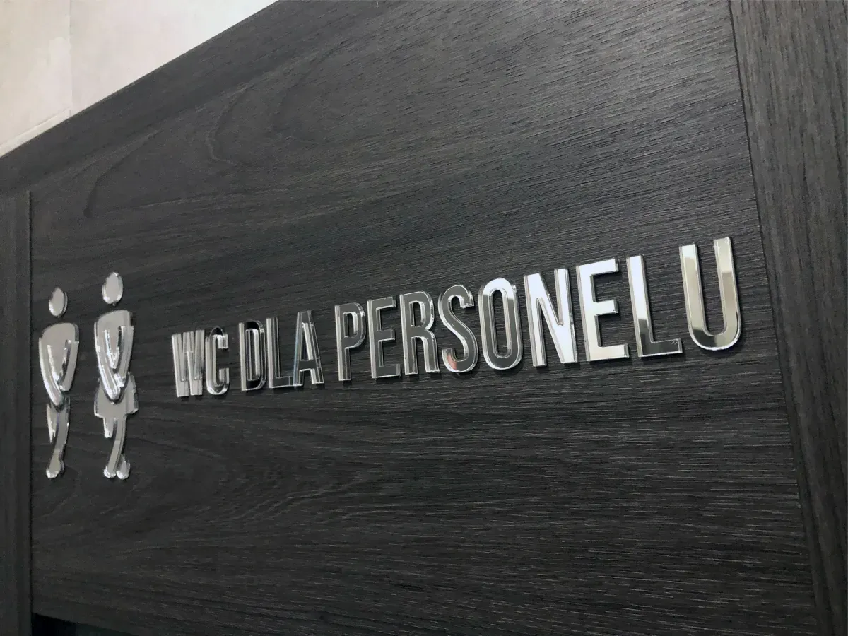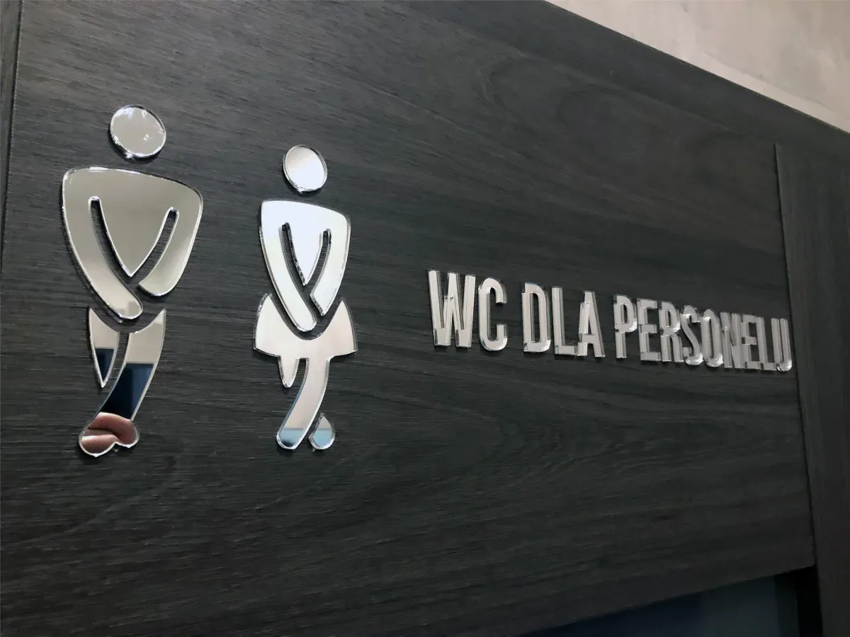 Nowoczesne i eleganckie oznakowanie pomieszczeń wykonane z lustrzanej pleksi srebrnej lustrzanej to idealne rozwiązanie dla biur, hoteli, gabinetów medycznych i przestrzeni komercyjnych.