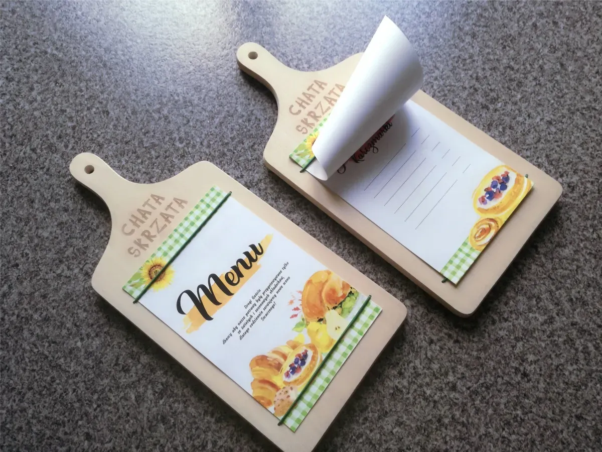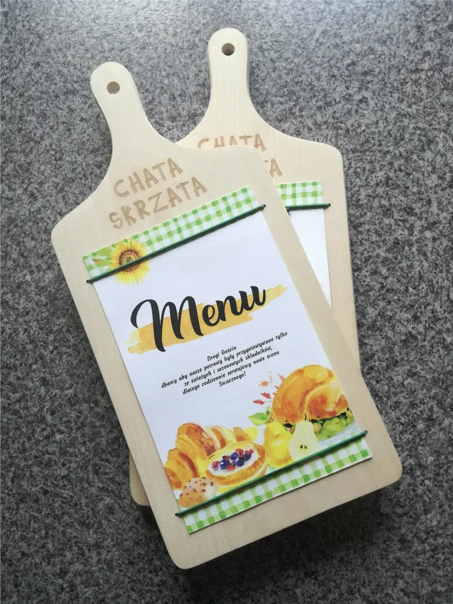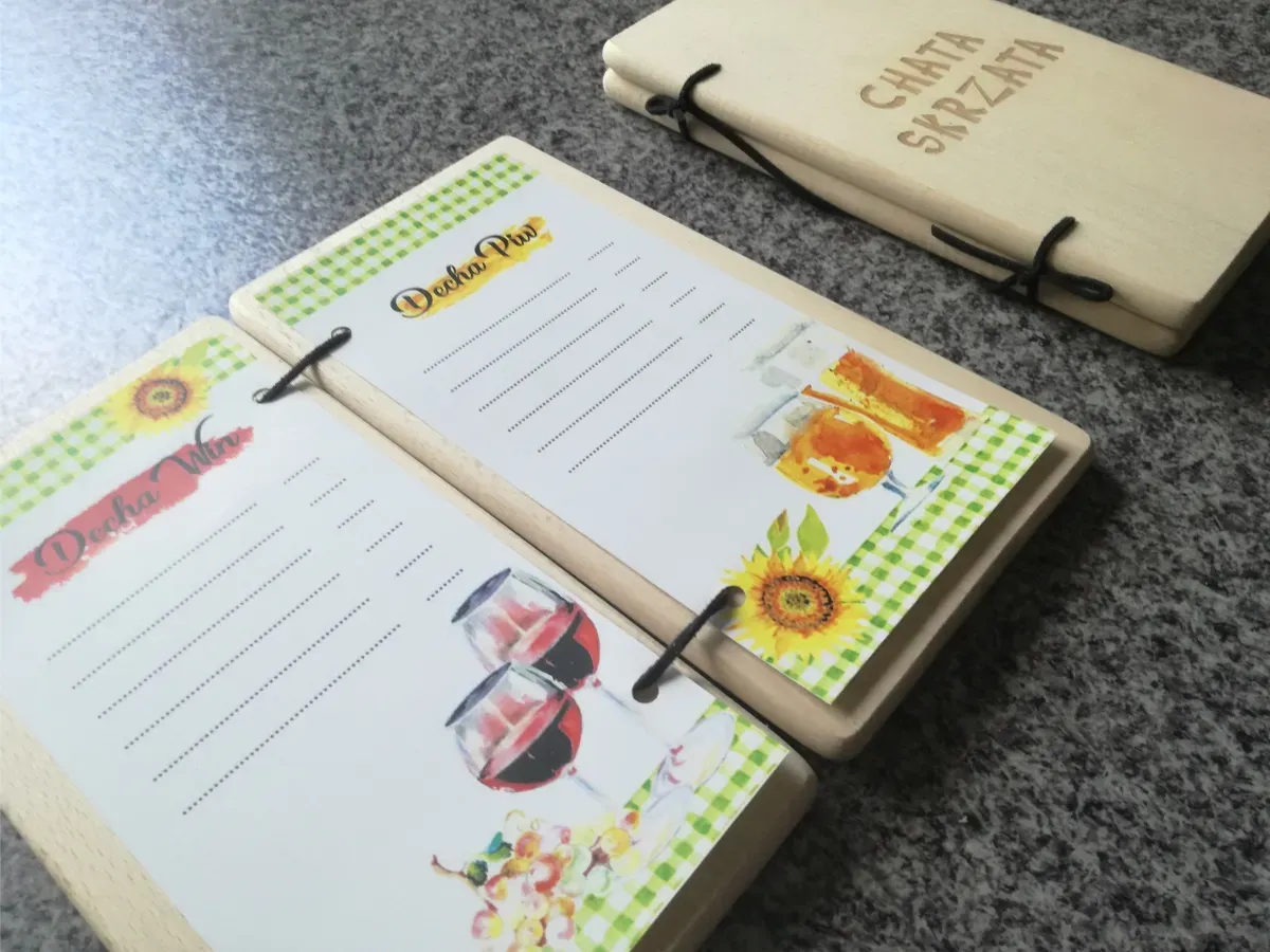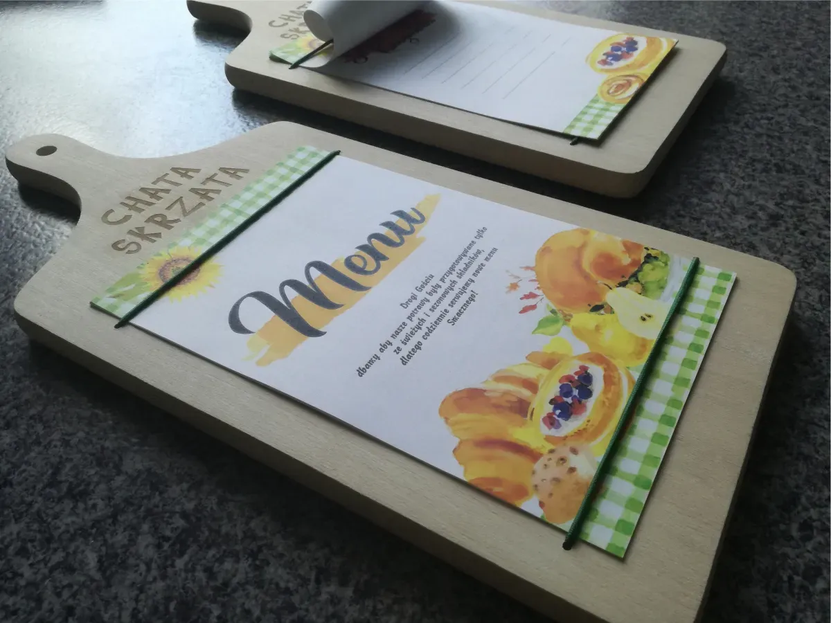 Kluczowym elementem realizacji był grawer na drewnianych deskach, który nadał menu niepowtarzalnego charakteru oraz podkreślił rękodzielniczy, tradycyjny wygląd. Dzięki precyzyjnemu wykonaniu każde menu stało się indywidualnym, estetycznym elementem wystroju restauracji.