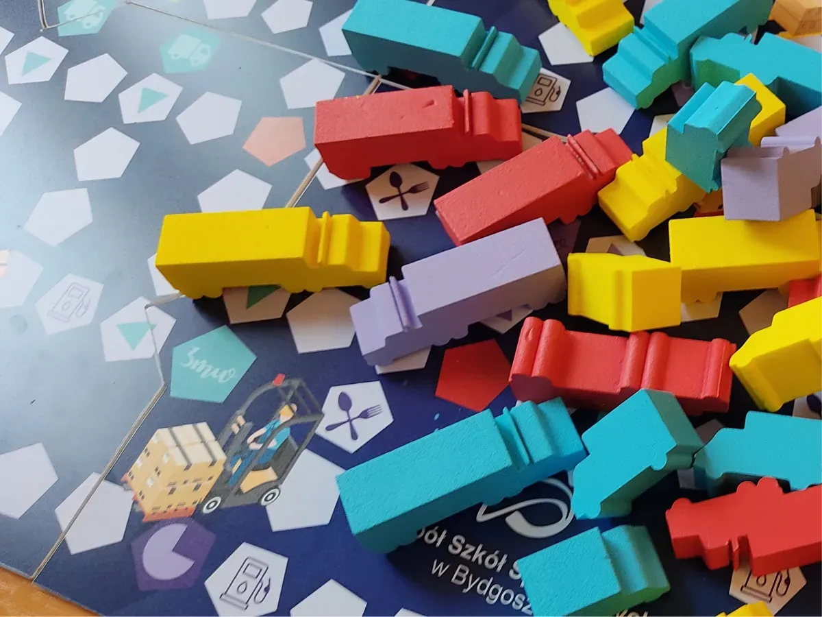 To dynamiczna gra edukacyjna, w której uczniowie wcielają się w spedytorów, planują trasy i zarządzają ładunkami. Projekt powstał w ścisłej współpracy z nauczycielami, dzięki czemu gra idealnie wpisuje się w profil szkoły i wspiera zdobywanie wiedzy. Zaprojektowaliśmy grafikę i wykonaliśmy kompletny zestaw gotowy do gry. Powstała gra łączy edukację z rozrywką, w praktyczny sposób przybliżając zagadnienia logistyki i transportu.